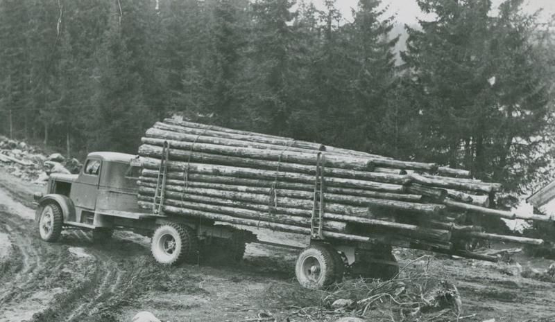 Petter Bønsnes Transport, kjøpte denne spesielle lastebilen rundt 1946-47. Den ble rigga for tømmertransport, Isaksen lasteapparat og tilhenger. Bilen med lasset er ikke den samme, men bilen til Bønsnes så likedan ut. Navn:FWD. produsert av Four Wheel Drive Auto Company i Wisconsin, USA. Det var Arne Bønsnes som var sjåfør på bilen, og far Petter, hjelpemann. Firmaet hadde også en International med samme utstyr fra Isaksen i Larvik. Her var Kåre Bønsnes sjåfør, og jeg var i en periode hjelpemann. Jeg var med for å dra ut vaiere tilhørende lasteapparat, og for å løse ut en av de to stakene ved lossing. Samt å være bremse mann, dette når vi hentet tømmer fra Øståsen. Det var jo mekanisk brems for bakre hjulsett, fra en spak foran passasjersete, derfra vaiere til bremsetromler. Det ble også henta mye tømmer fra Holleia. Kan også tilføye at Statens Vegvesen skaffet seg mange av denne FWD'n. Den var ypperlig som brøytebil.