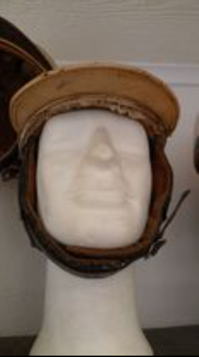 Hjelmer i forskjellige utførelser, noen i et materiale som ligner pappmaché, men også
