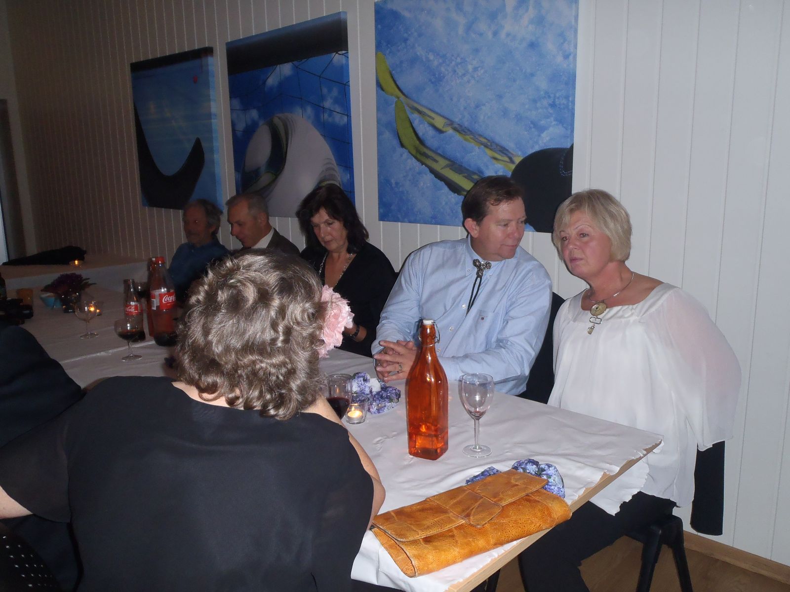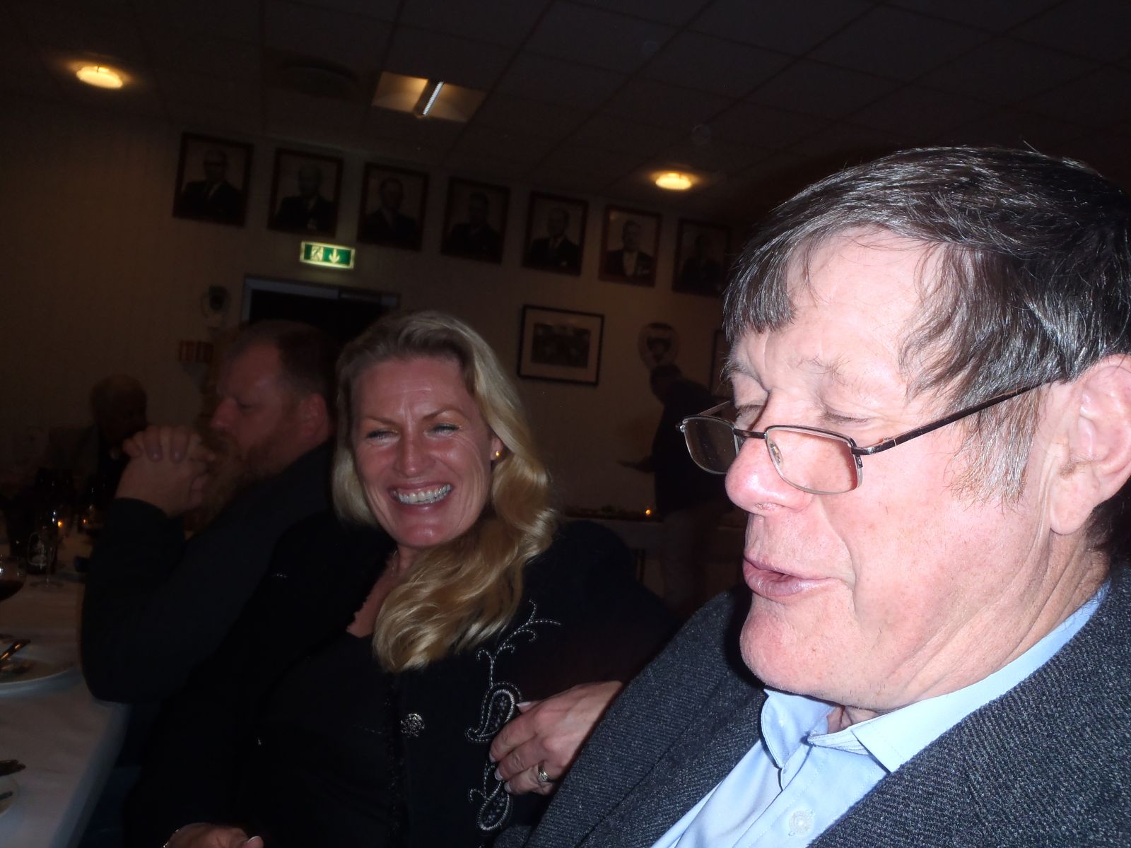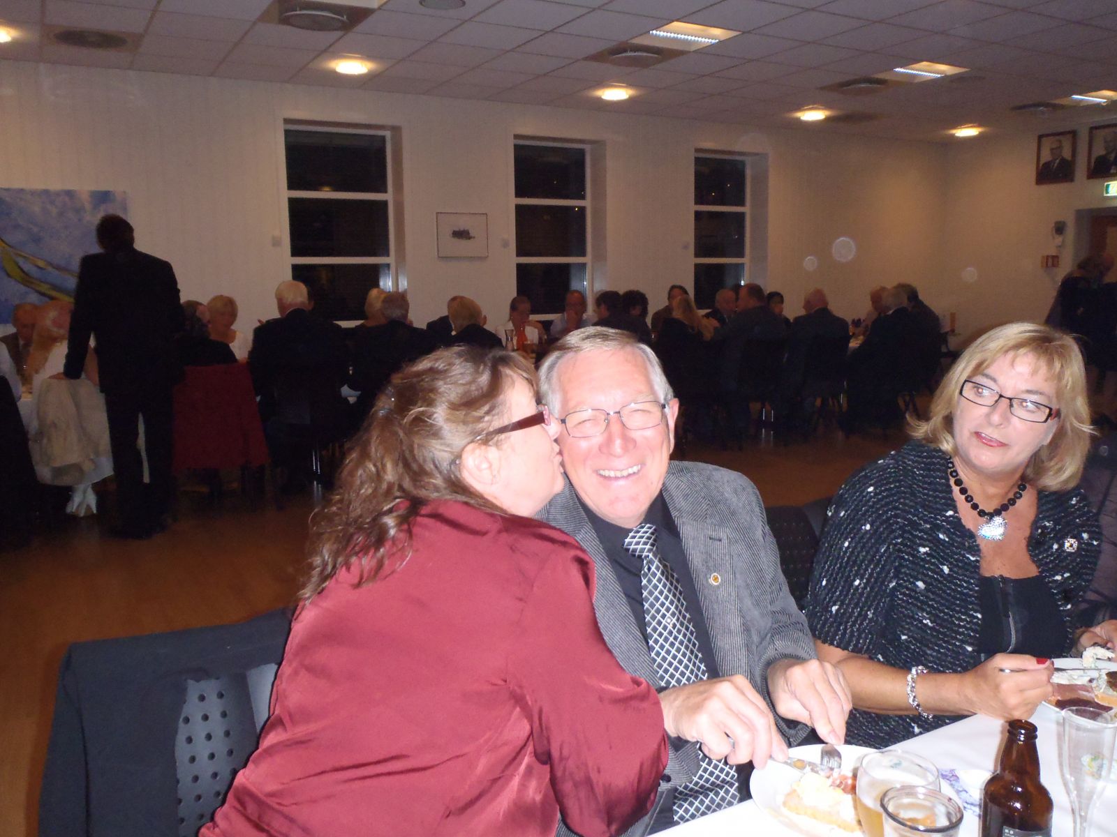 Ut over kvelden fikk de som ønsket det svingt seg til levende musikk og det ble servert kaffe, kake med avec. Vi hadde fått bestillt en flott kake med vårt klubbemblem. Loddsalg ble det også og alle loddene ble solgt. Ikke dårlig.